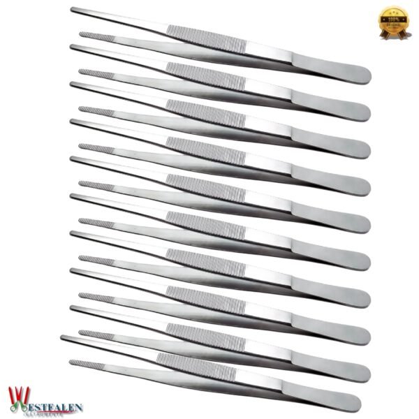 10-Pack of 6″ Dressing Tweezers with 2cm Serrated Tips – Surgical-Grade Tissue Thumb Forceps