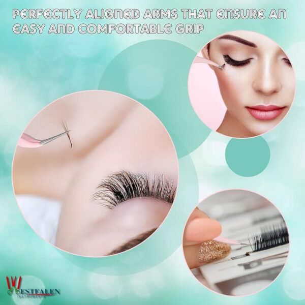 Each tweezer is meticulously crafted from high-grade stainless steel, offering exceptional strength, corrosion resistance, and durability. The ergonomic, slip-resistant handles provide a secure grip and minimize hand fatigue, even during extended use. The carefully aligned tips allow for effortless isolation, selection, and placement of lashes with unparalleled accuracy.
