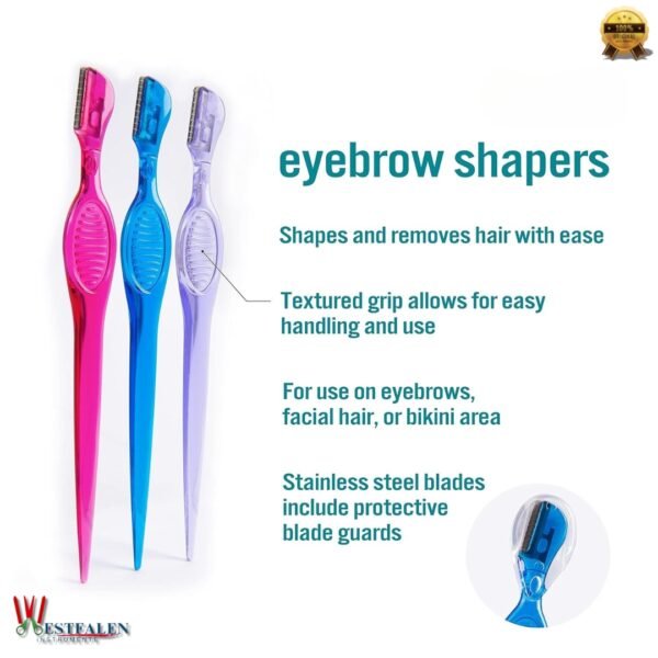 Eyebrow Shapers (3-Pack): Crafted with stainless steel blades and ergonomic handles, these eyebrow razors are perfect for defining arches, removing peach fuzz, and managing hair on the face, neck, or bikini line with clean precision.