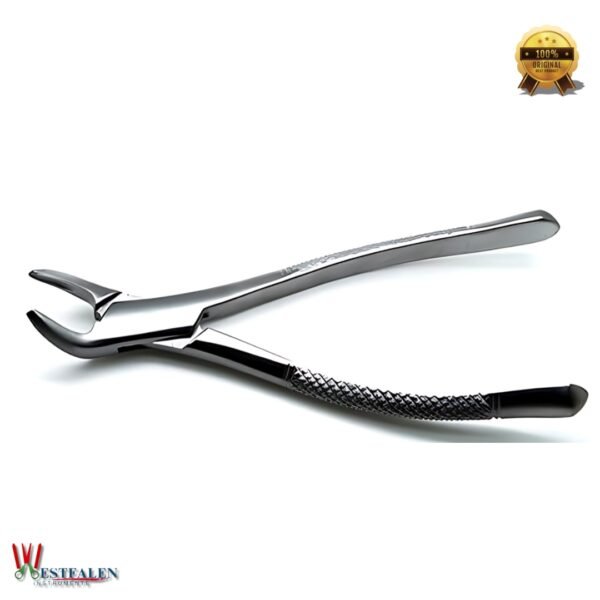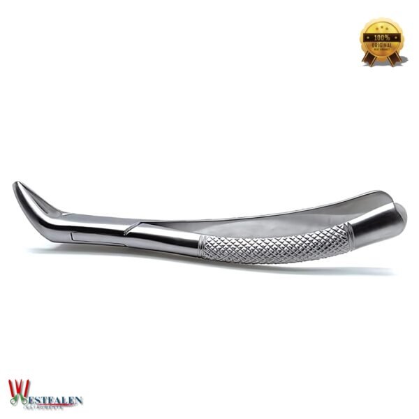 The beak geometry of these forceps is expertly enhanced to ensure secure engagement with the tooth, even in hard-to-reach areas. Whether you’re working in a dental clinic or surgical environment, the serrated, matte-finish handle provides superior grip and control, while also reducing weight and preventing glare from dental lights.