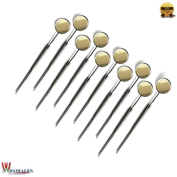 This pack includes 10 dental mouth mirrors, each crafted from durable stainless steel to ensure long-lasting performance and resistance to corrosion. Ideal for repeated use in clinical settings, dental schools, and at-home oral care.