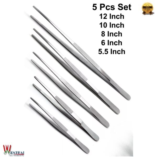 Complete Set of 5 Forceps in sizes: 5.5″, 6″, 8″, 10″, and 12″