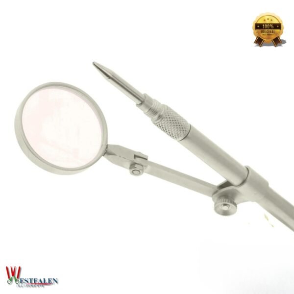 Designed for critical precision in delicate ophthalmic procedures, the Westfaleninstrumene Eye Magnet Loop Forceps combines innovation and reliability in one compact tool. Made from high-quality medical-grade stainless steel, it features an integrated magnifying glass to enhance visibility and ensure safe and accurate removal of metallic particles, debris, or dust from the eye.
