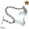 Constructed from galvanized steel, the hobble is built for longevity and corrosion resistance even in rugged barn or field conditions. Its design includes two curved hooks that securely fit over the cow’s hind leg tendons, connected by a strong central chain to maintain a consistent and safe distance between the legs.