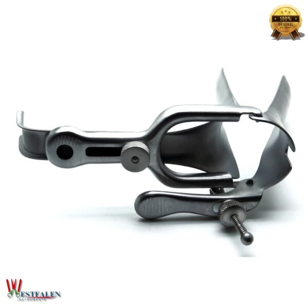 This double-blade duckbill speculum is inserted with the blades closed and opened via a secure external lever and screw mechanism. Its design includes wider bills and curved sides, making it especially suitable for women who have had sexual intercourse. The widened shape allows enhanced visualization of internal pelvic structures.