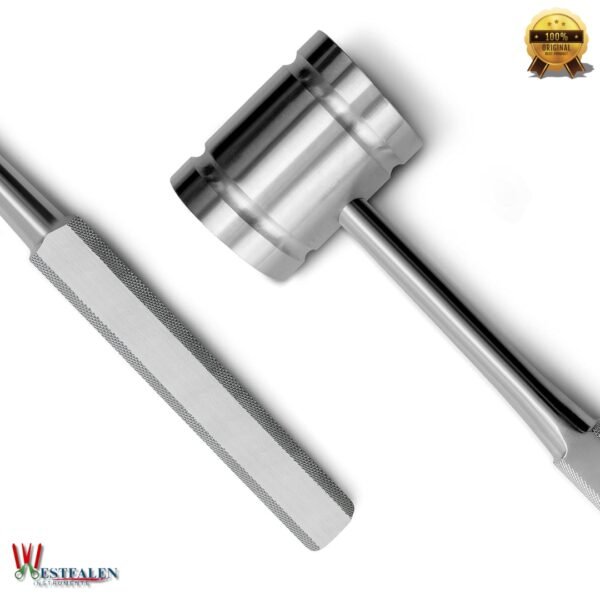 Crafted from durable, corrosion-resistant aluminum steel, this bone mallet is built to withstand heavy surgical use without degrading over time. It offers superior balance and durability, making it a trusted instrument for professionals worldwide.