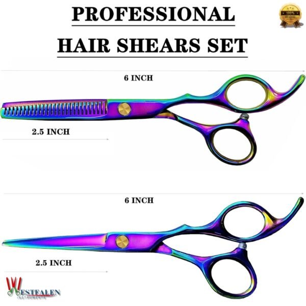 Professional Hair Cutting Shears Set – 6 Inch Rainbow Hairdressing Kit with Thinning Scissors & Storage Bag