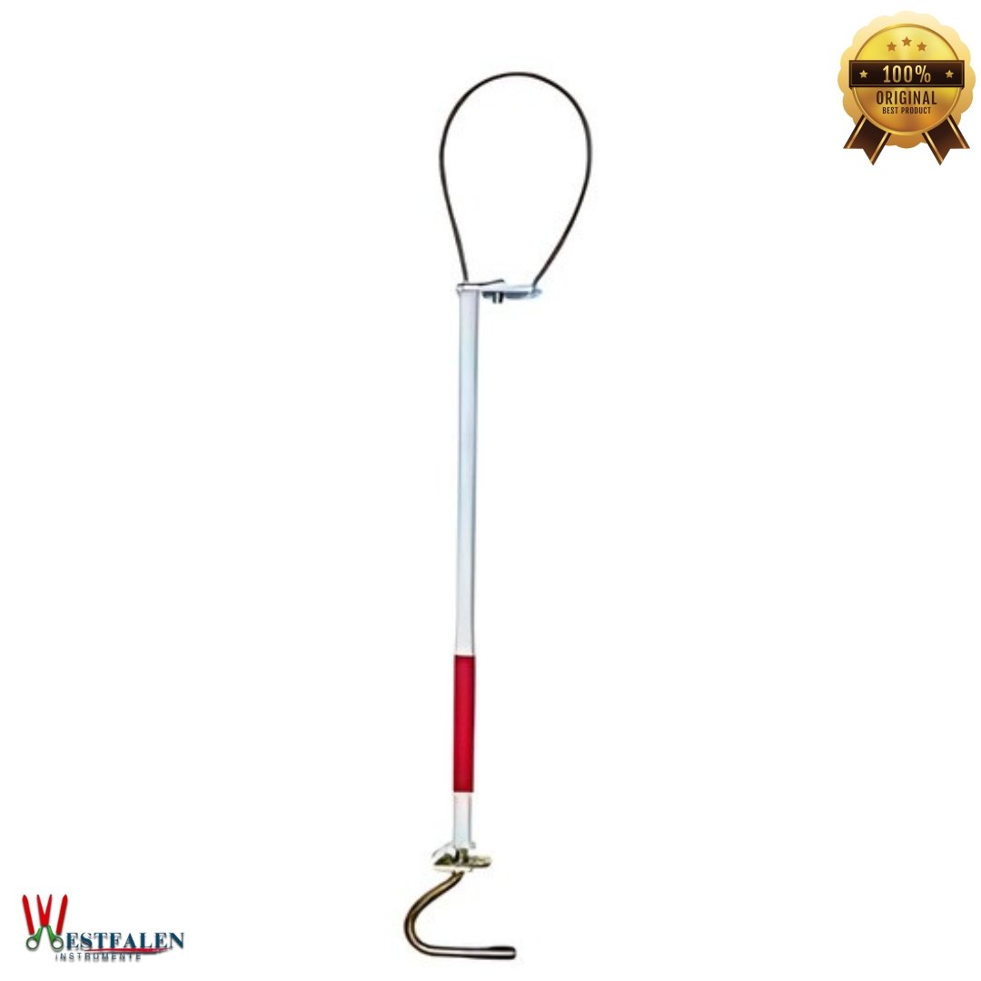 The Westfaleninstrumente Ring-O-Matic Hog Catcher (WI-20,0001) is an essential restraint tool used for the safe and humane handling of hogs. Crafted for single-operator use, this device features a strong steel handle and a durable, smooth-surfaced cable designed to loop around the animal’s snout or body for effective control during examination, treatment, or transport.