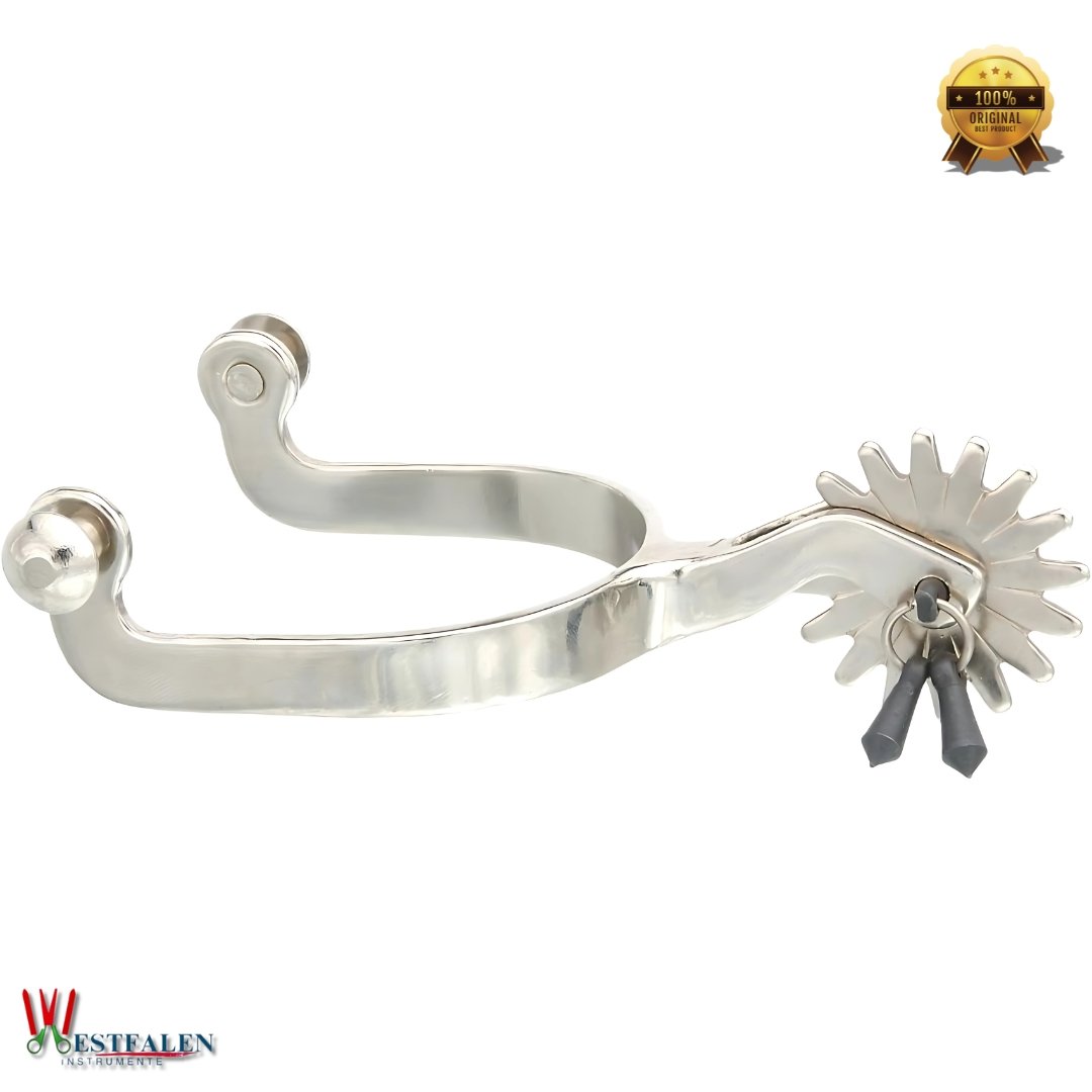 These Western Spurs by WESTFALENINSTRUMENTE are crafted from premium stainless steel and built for long-term use. Designed with a traditional curved shank and prominent rowel, they offer both function and style for the dedicated horse rider.