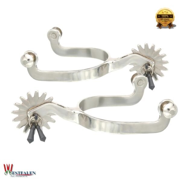 Made from high-quality stainless steel, these spurs are corrosion-resistant and built to endure rugged riding conditions. The smooth, polished finish provides a sleek appearance while remaining gentle on your boots and reliable during every ride.